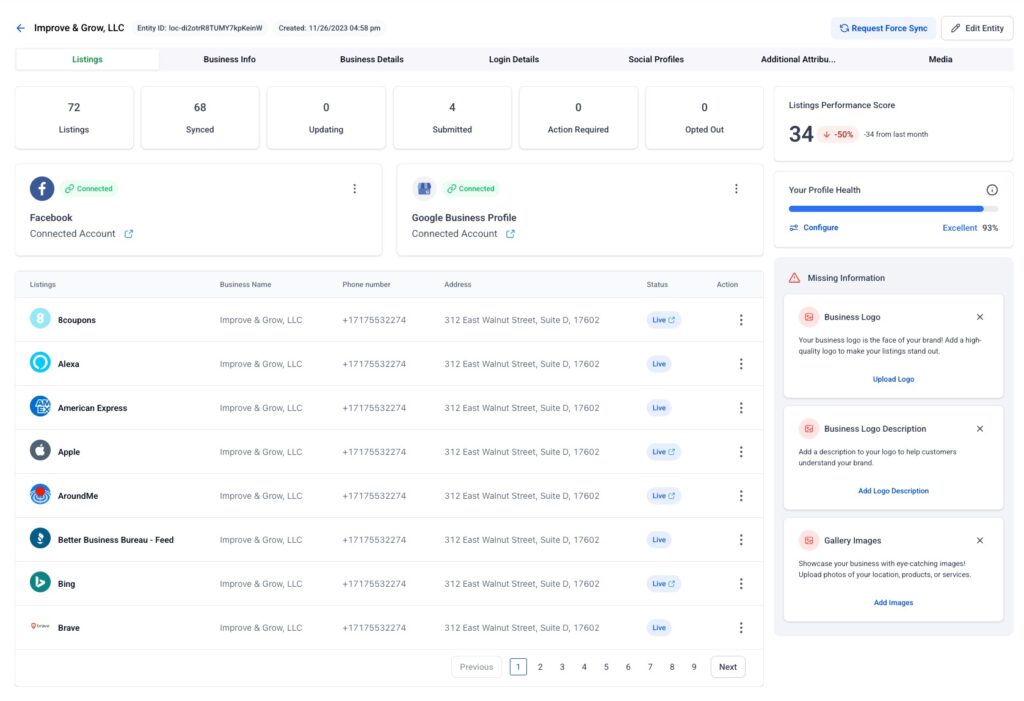 Business listing management is the process of ensuring your business information is accurate and consistent across online directories like Google, Yelp, and other platforms.